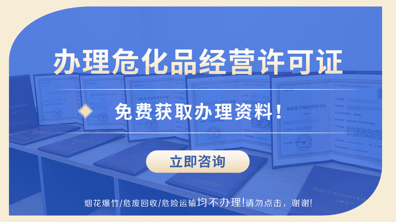 2. 申請(qǐng)危化證須以公司名義,個(gè)人不可私自經(jīng)營危化品。而若企業(yè)在沒有危化證的情況下私自經(jīng)營危化品,即為無證經(jīng)營,會(huì)遭受相關(guān)懲處。